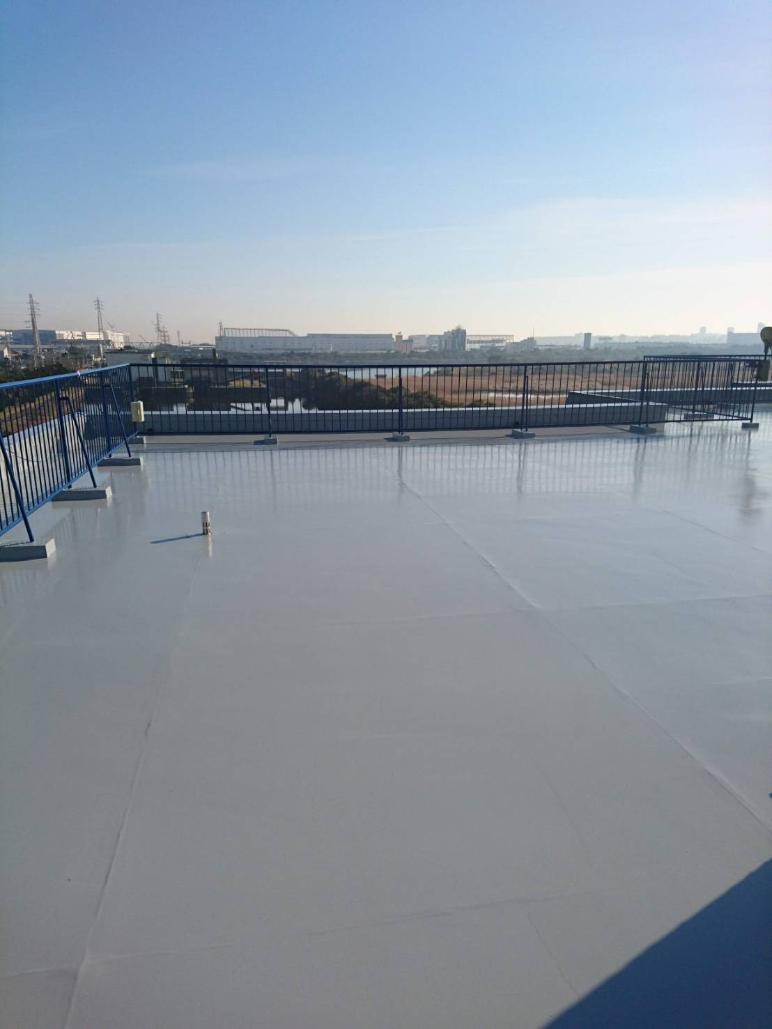 - 4階建てマンション。<div><br></div><div>外壁は水性ラジカル系シリコン樹脂塗料(SK化研 プレミアムシリコン)で塗装し、</div><div>屋上は日本特殊塗料プルーフロンで防水工事をさせていただきました。</div><div>プライマー、ウレタン塗布の後トップ上塗りの工程です。</div>